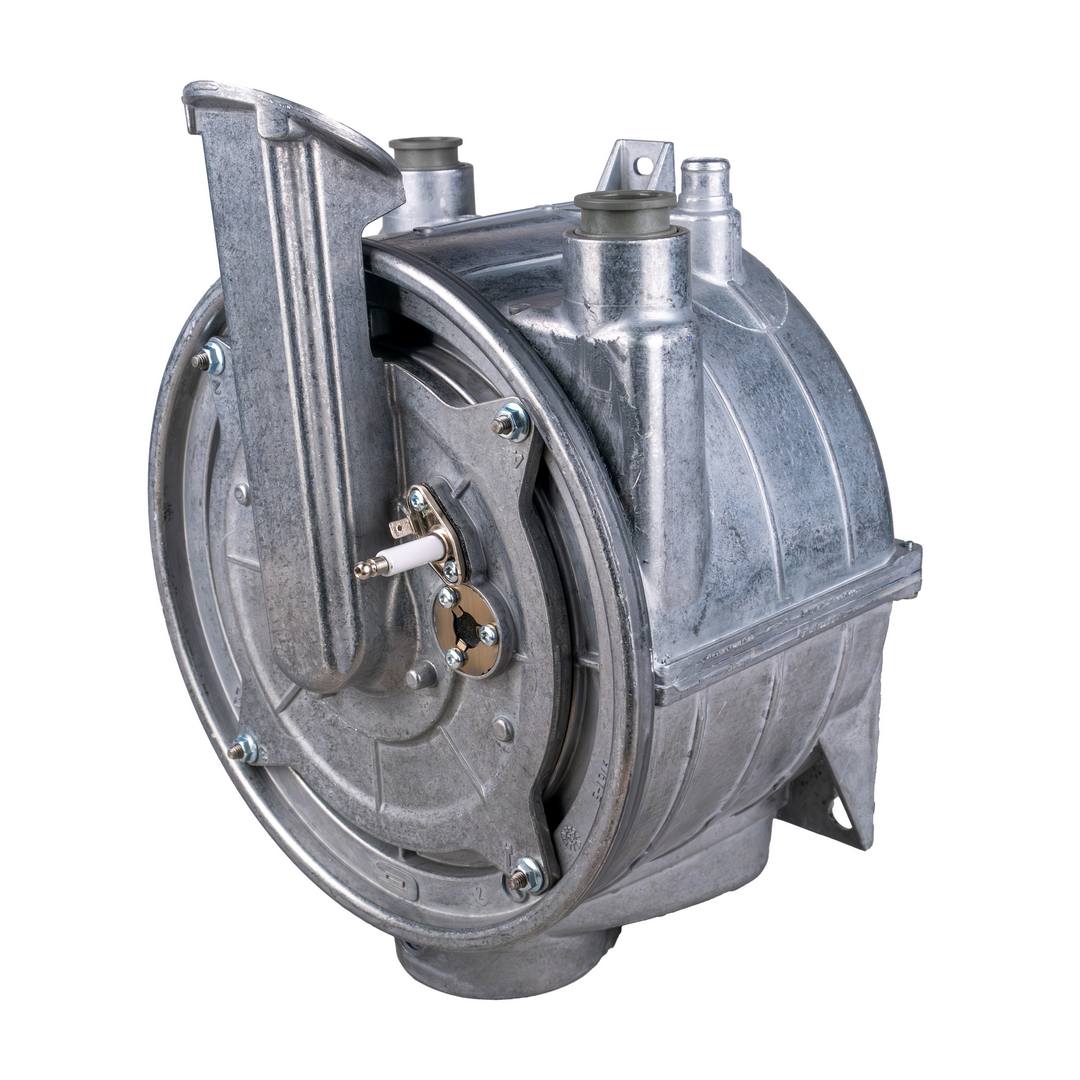 Передает тепловую энергию сжигаемой в камере сгорания газовоздушной смеси теплоносителю посредством теплопроводности. Альтернативное название - монотермический теплообменник.